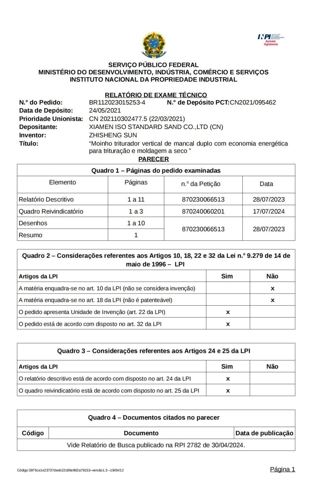 近日,廈門艾思歐標準砂有限公司專利獲巴西國家工業產權局(INPI)PCT ... ?